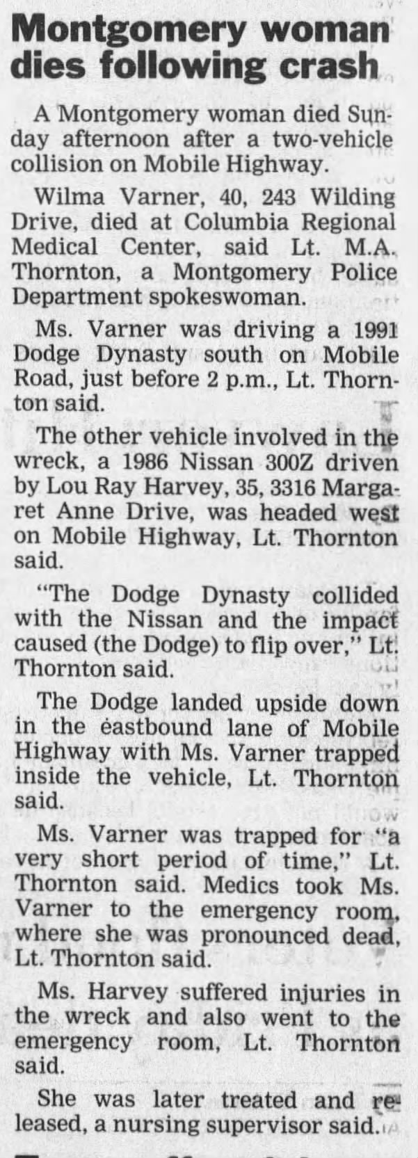 Miss Wilma Nell Varner, a resident of Montgomery, Alabama, expired Sunday, October 20, 1996.